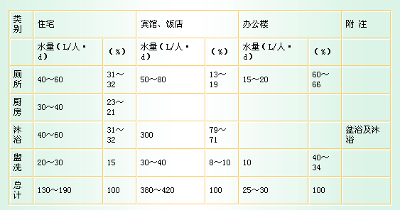 注:各類建筑物的各種用水量及百分率應以實測資料為準。在無實測資料時,可參照本表計算。洗衣用水量可根據實際使用情況確定。
