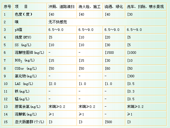 注:1、本表摘自《城市雜用水水質標準》采樣要求及測定方法見該標準。