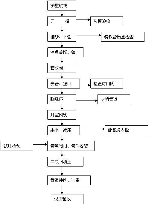 一、球墨鑄鐵管安裝(膠圈接口)的工藝流程: