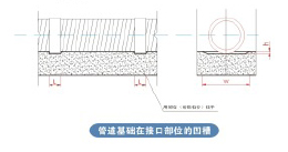 3.4管道基礎(chǔ)在接口部位的凹槽,宜在鋪設(shè)管道時隨鋪隨挖,凹槽長度L按管徑大小采用,宜為0.4~0.6m,凹槽深度H宜為0.05~0.10m,凹槽寬度W宜為管道直徑的1.1倍(見小圖)。接口完成后,凹槽隨即用砂回填密實。