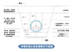 ②設(shè)計管基支承角2ɑ范圍內(nèi)不得用溝槽土回填,管道位于車行道下,鋪設(shè)后即修筑路面或管道位于軟土地層以及低洼、沼澤、地下水位高的地區(qū)時,溝槽回填應(yīng)先用中粗砂將管底腋角部位填充密實后,再用粗砂或石屑等材料分層回填至管頂以上0.4m,在往上可回填良質(zhì)土。
